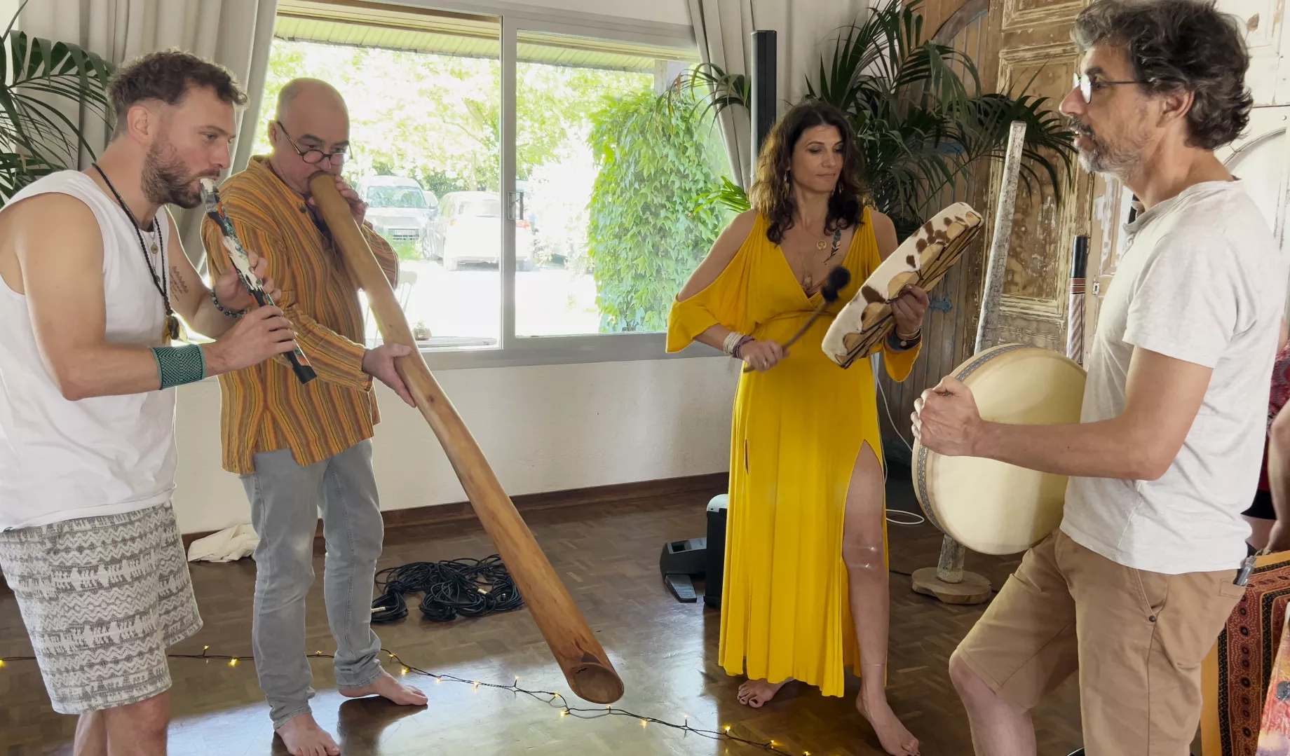 J’invite à libérer le corps, apaiser le mental et célébrer la vie à travers des voyages dansés, des sessions au casque — en nature ou en salle —, des cercles de chant, des ateliers de transformation, des cérémonies cacao à la rose et des concerts vibratoires.